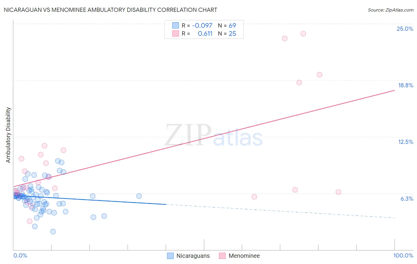 Nicaraguan vs Menominee Ambulatory Disability Correlation Chart