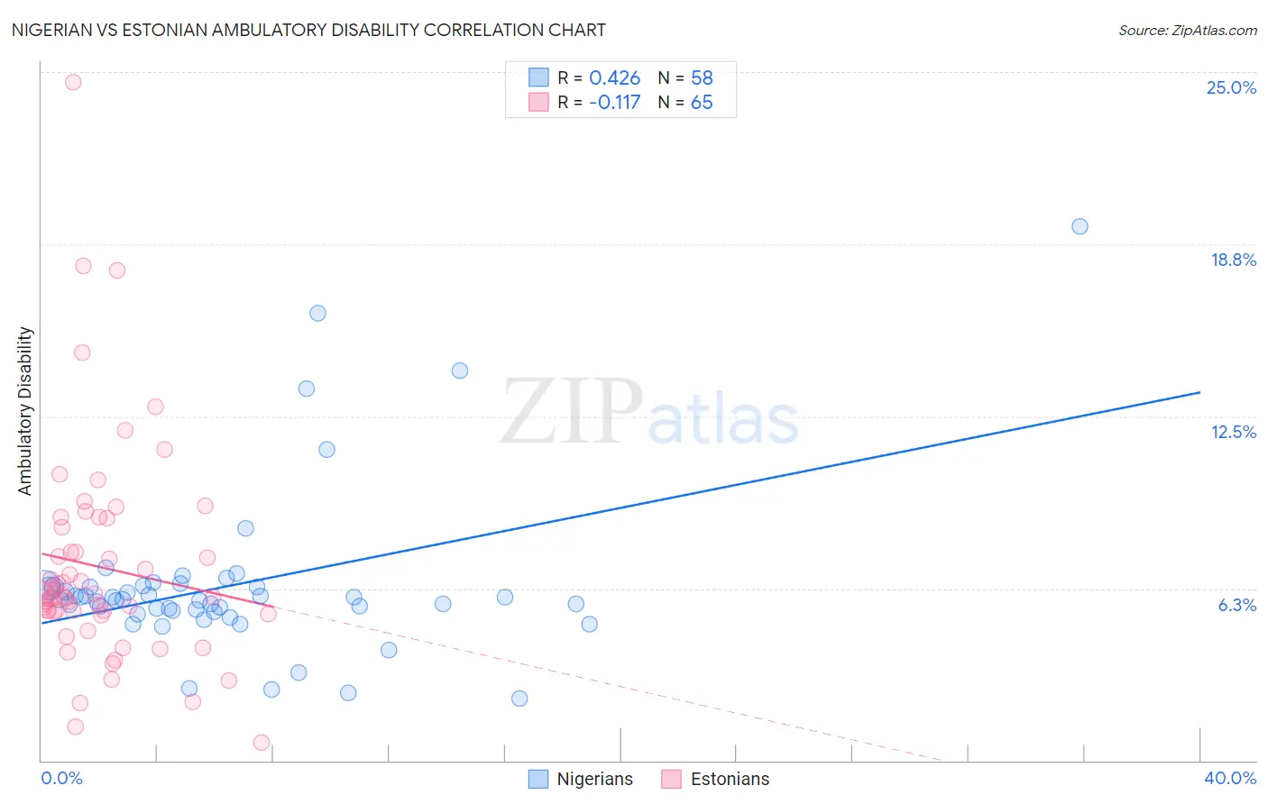 Nigerian vs Estonian Ambulatory Disability Correlation Chart