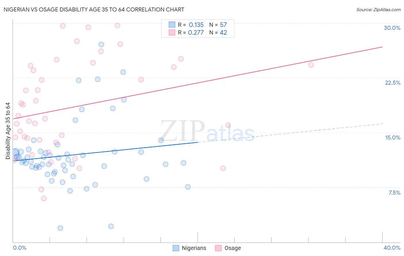Nigerian vs Osage Disability Age 35 to 64 Correlation Chart