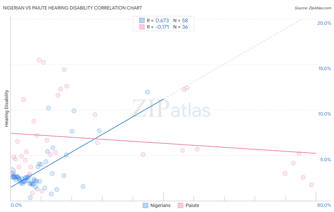 Nigerian vs Paiute Hearing Disability Correlation Chart