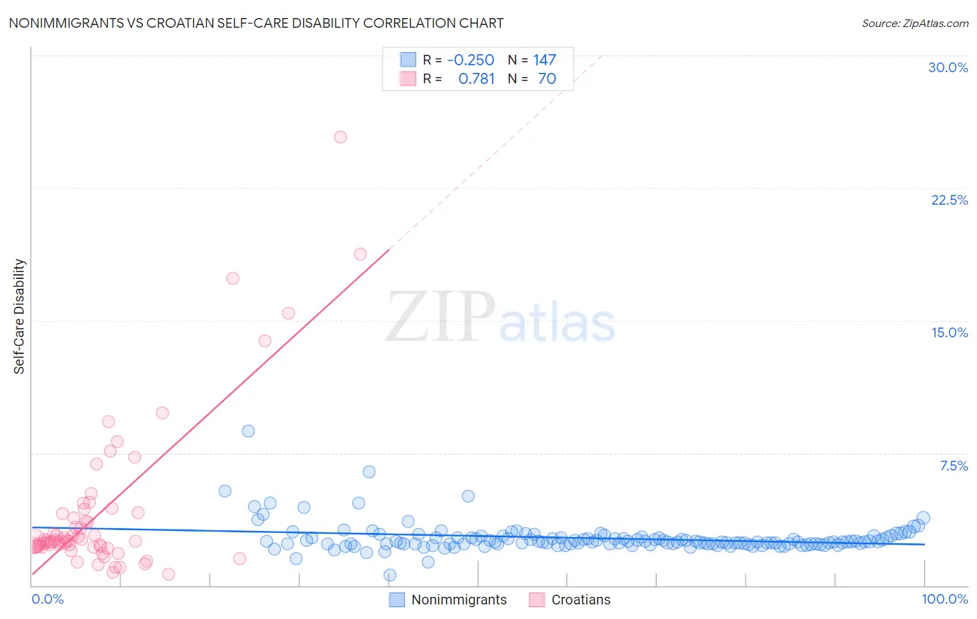 Nonimmigrants vs Croatian Self-Care Disability Correlation Chart