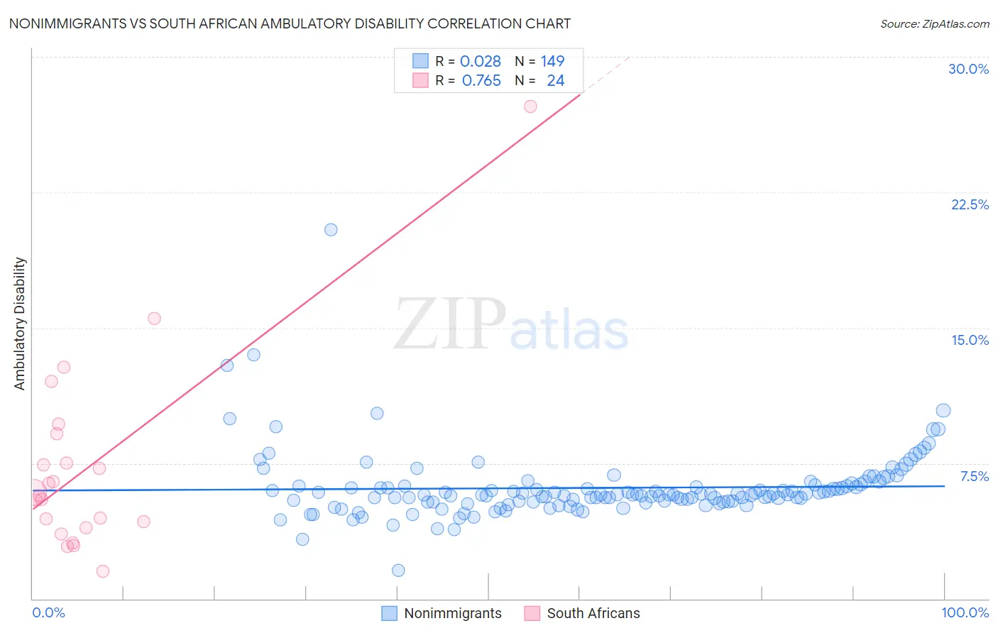 Nonimmigrants vs South African Ambulatory Disability Correlation Chart