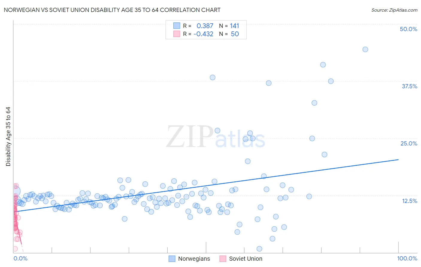 Norwegian vs Soviet Union Disability Age 35 to 64 Correlation Chart