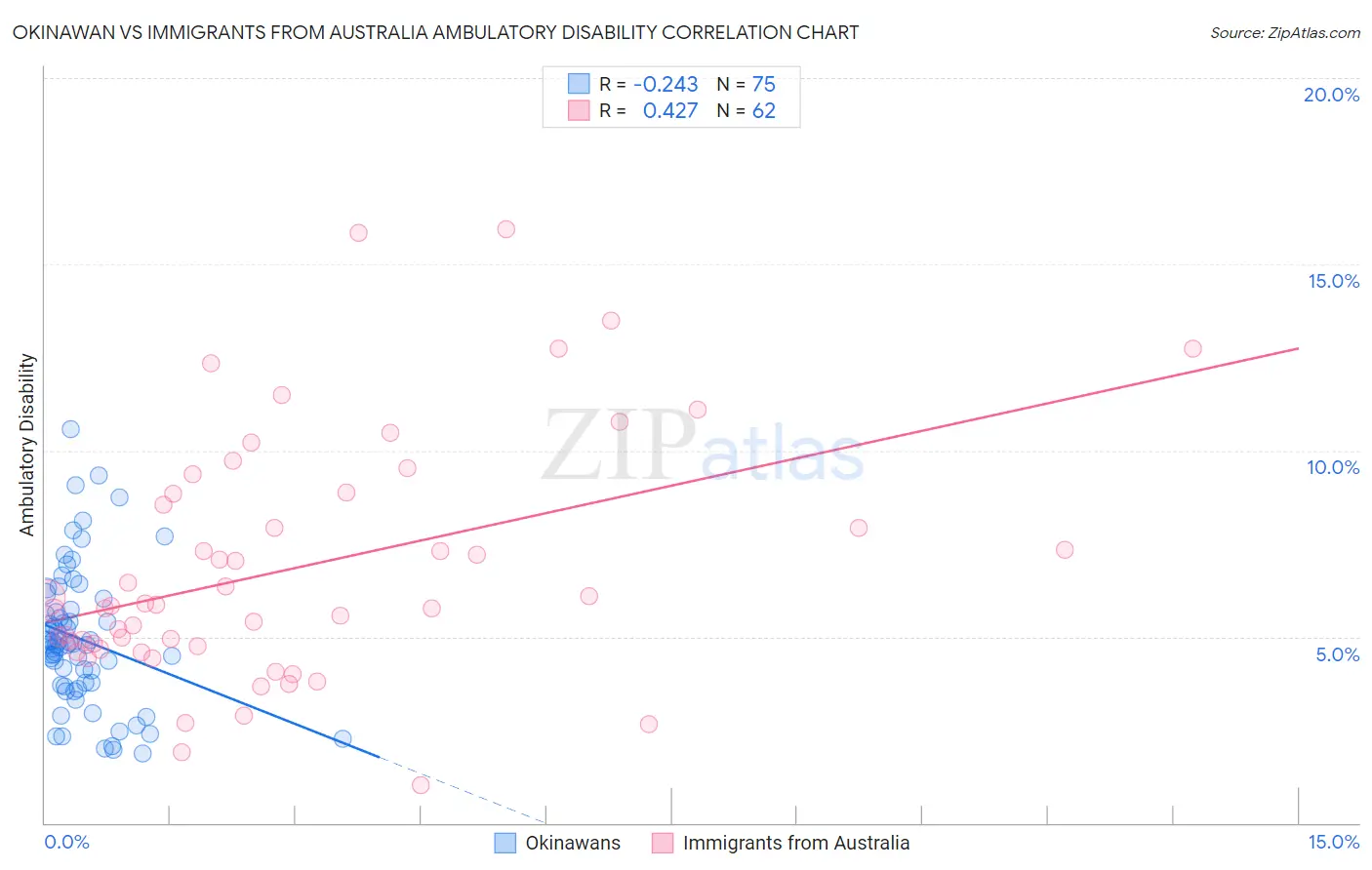 Okinawan vs Immigrants from Australia Ambulatory Disability Correlation Chart