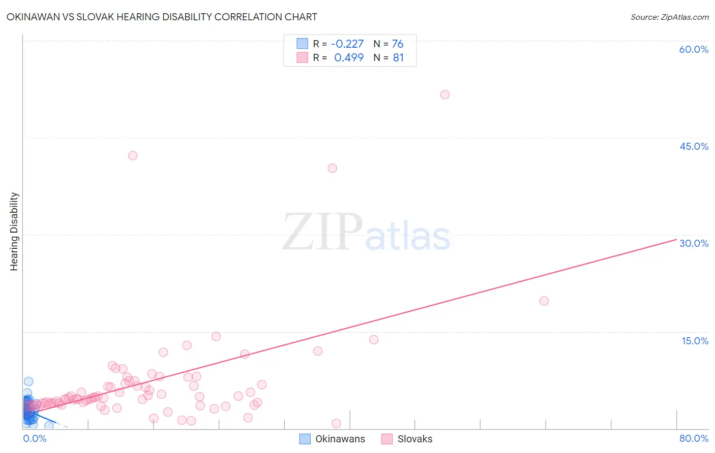 Okinawan vs Slovak Hearing Disability Correlation Chart