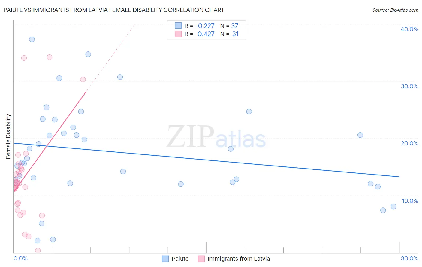 Paiute vs Immigrants from Latvia Female Disability