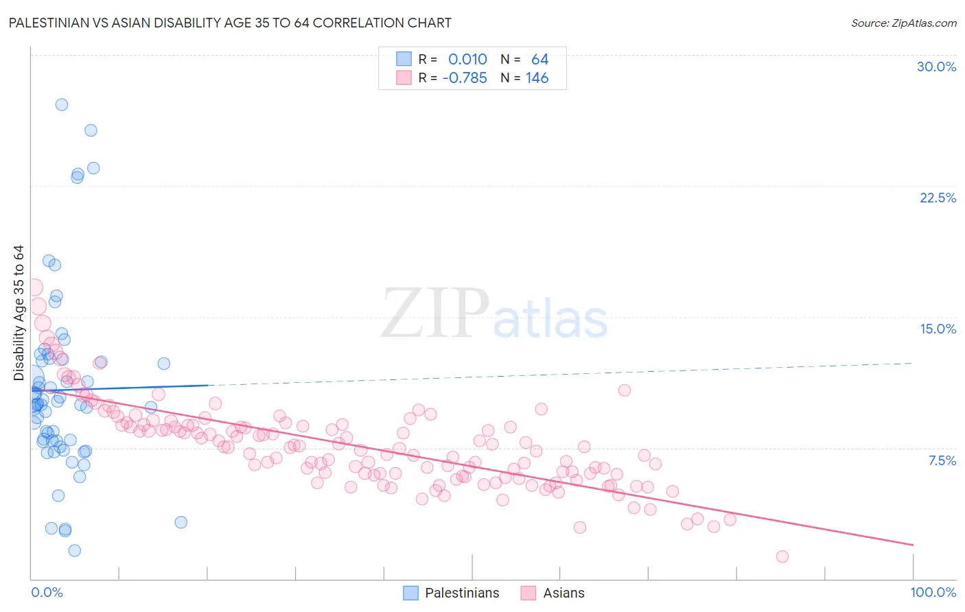 Palestinian vs Asian Disability Age 35 to 64 Correlation Chart