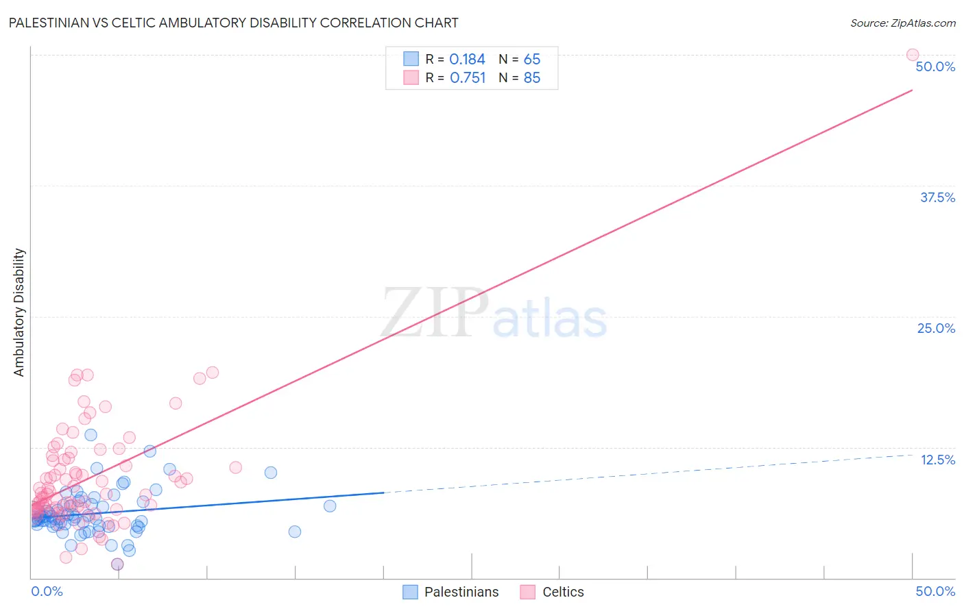 Palestinian vs Celtic Ambulatory Disability Correlation Chart