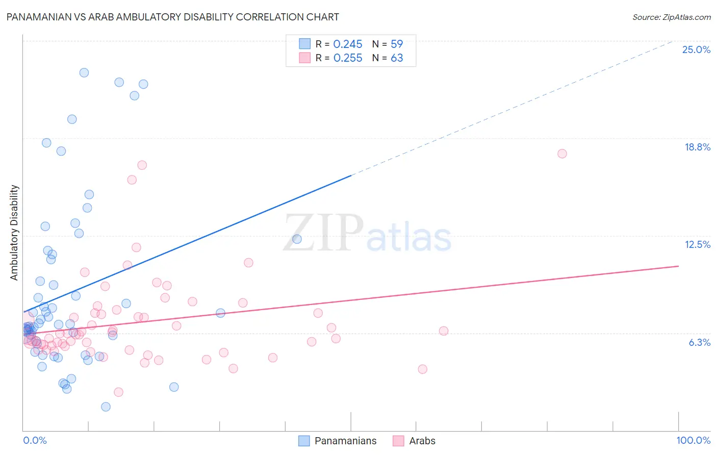 Panamanian vs Arab Ambulatory Disability Correlation Chart