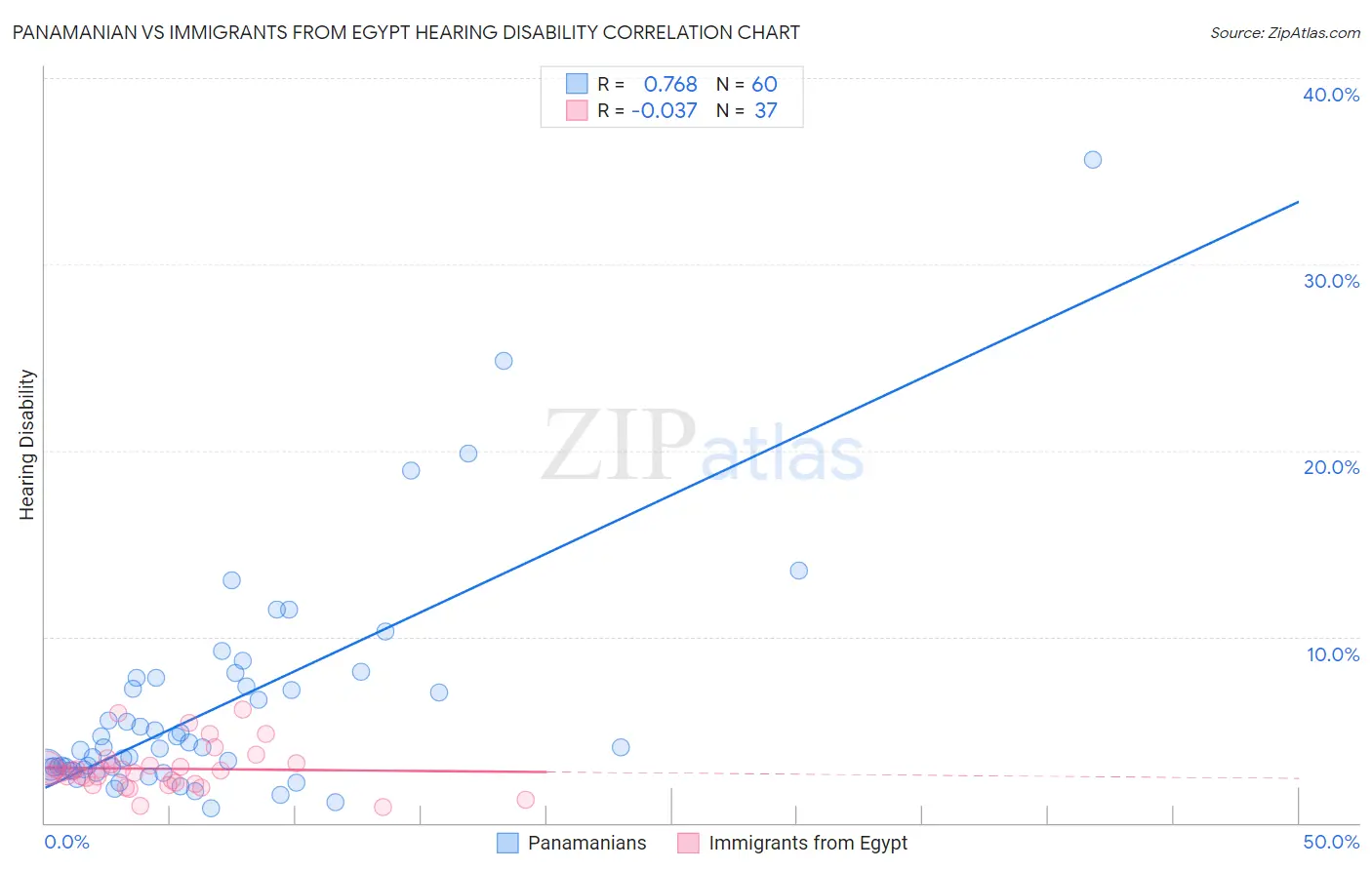 Panamanian vs Immigrants from Egypt Hearing Disability Correlation Chart