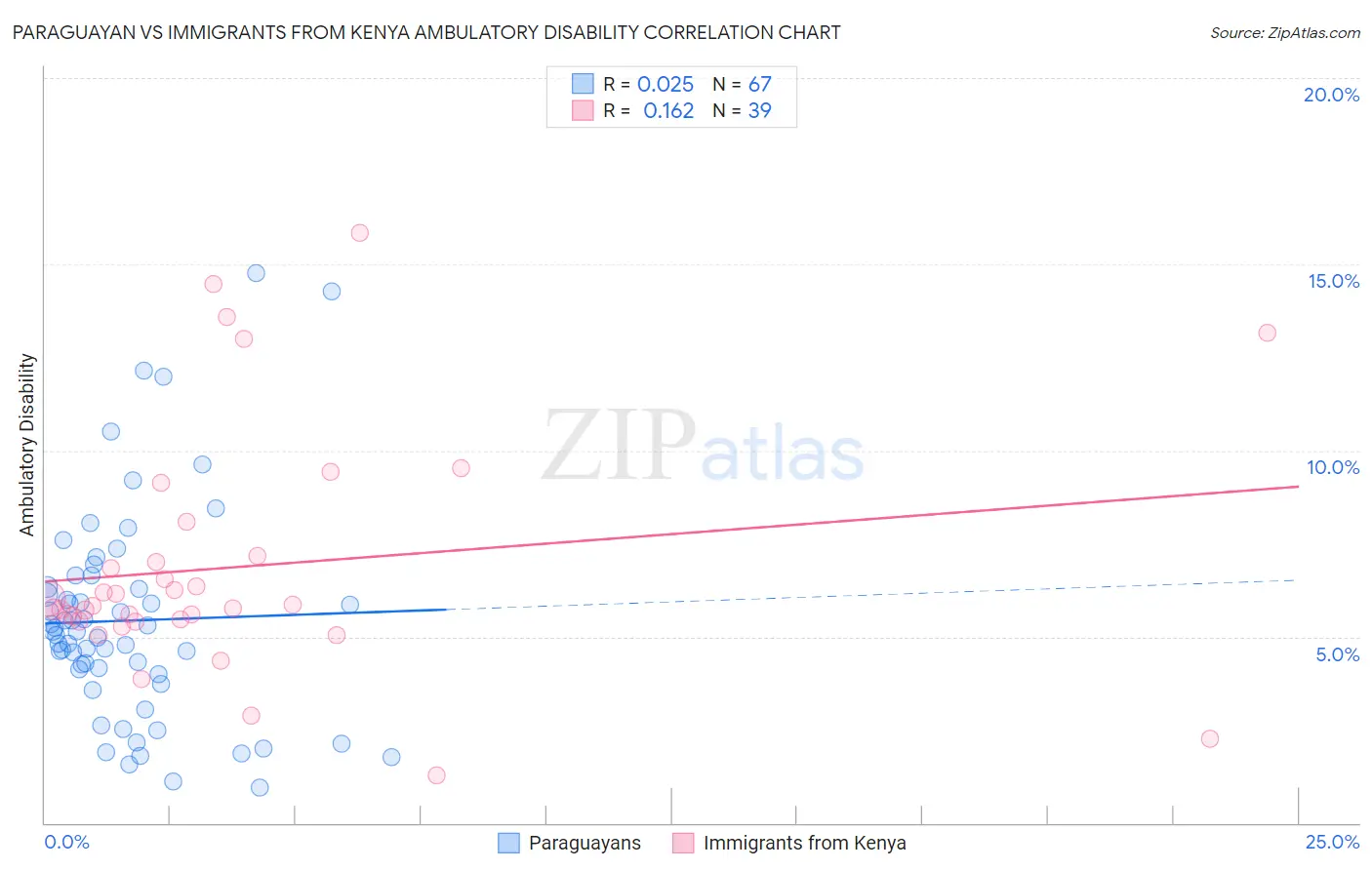 Paraguayan vs Immigrants from Kenya Ambulatory Disability Correlation Chart