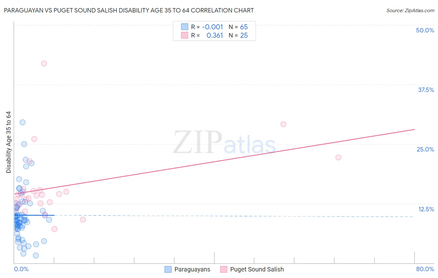Paraguayan vs Puget Sound Salish Disability Age 35 to 64 Correlation Chart