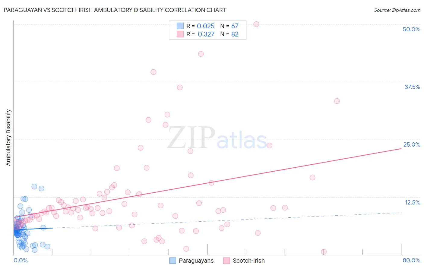 Paraguayan vs Scotch-Irish Ambulatory Disability Correlation Chart