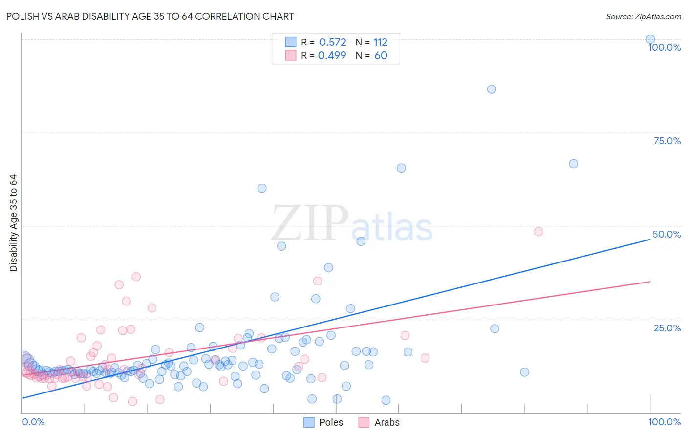 Polish vs Arab Disability Age 35 to 64 Correlation Chart
