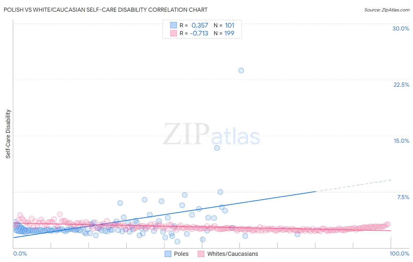 Polish vs White/Caucasian Self-Care Disability Correlation Chart
