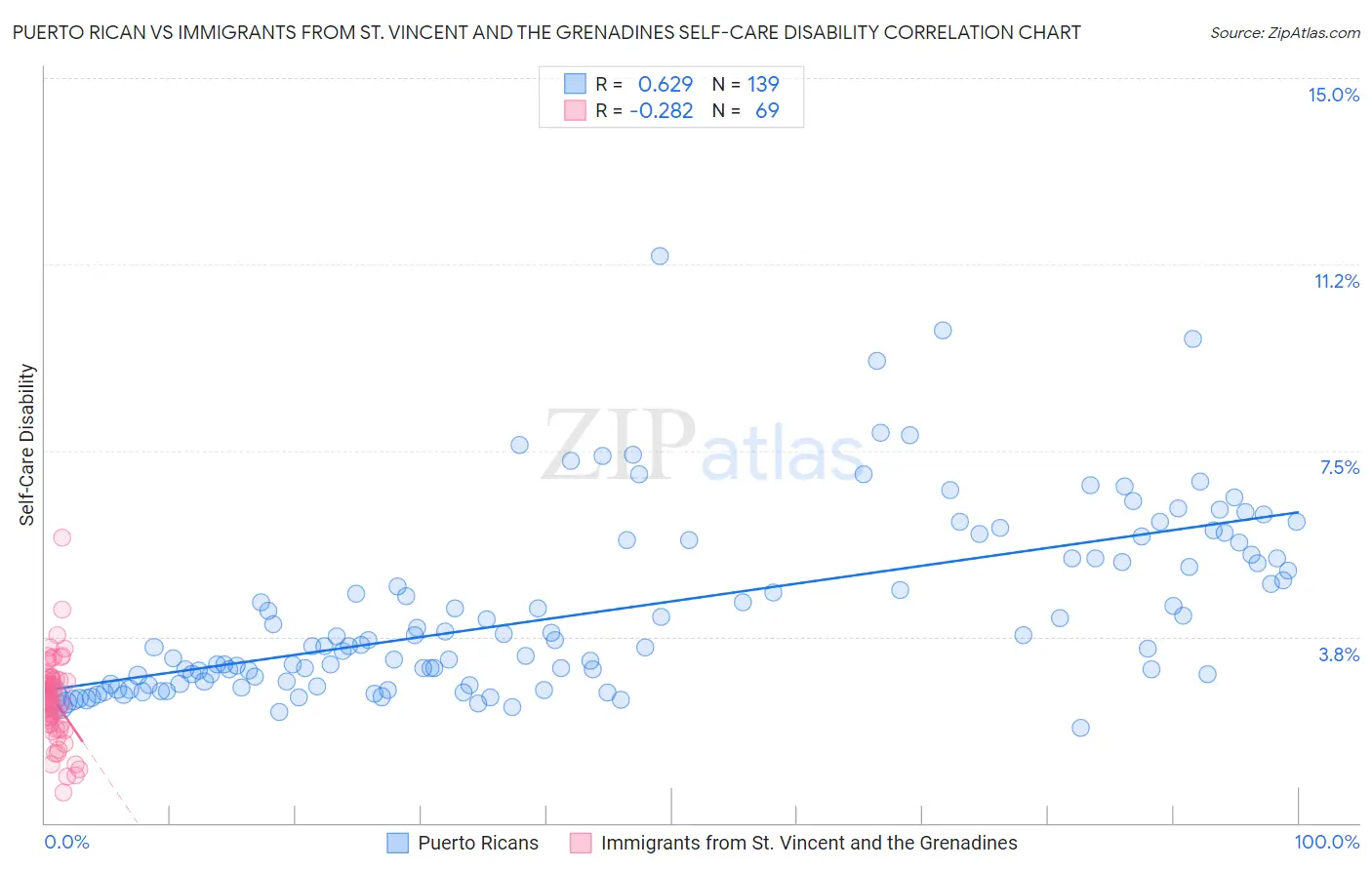 Puerto Rican vs Immigrants from St. Vincent and the Grenadines Self-Care Disability Correlation Chart