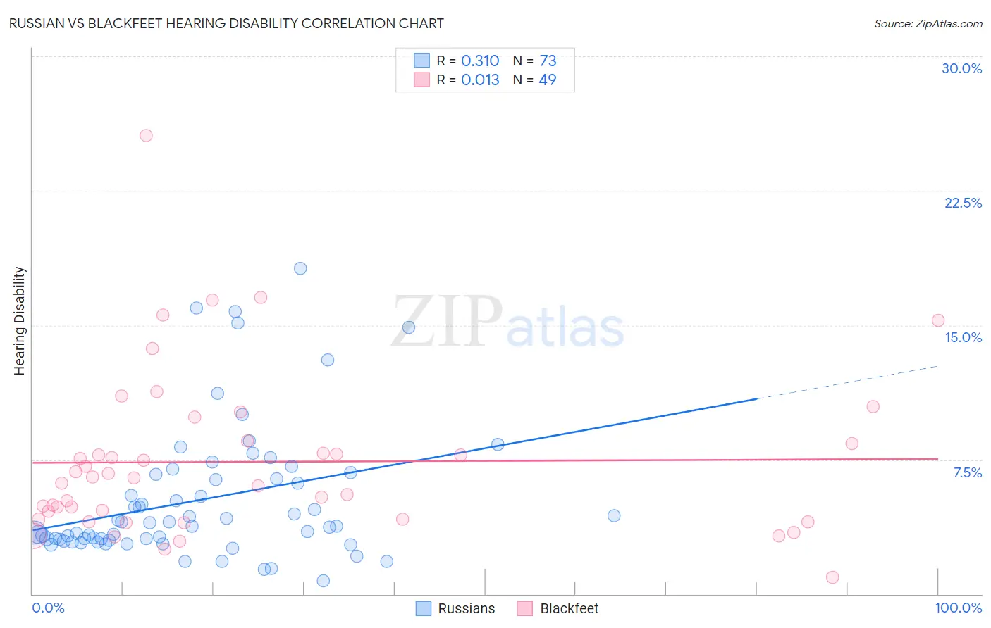 Russian vs Blackfeet Hearing Disability Correlation Chart