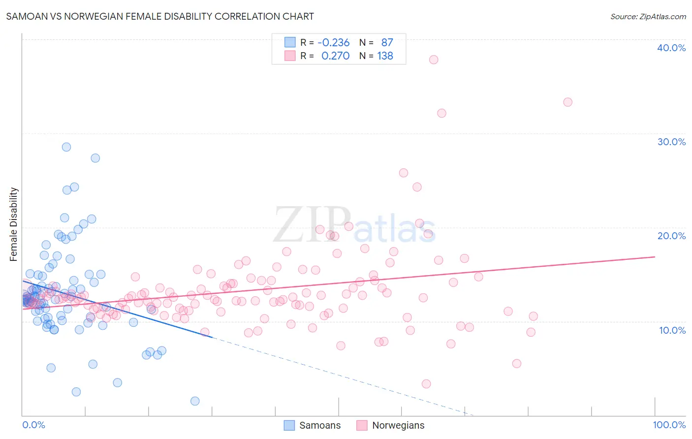 Samoan vs Norwegian Female Disability Correlation Chart