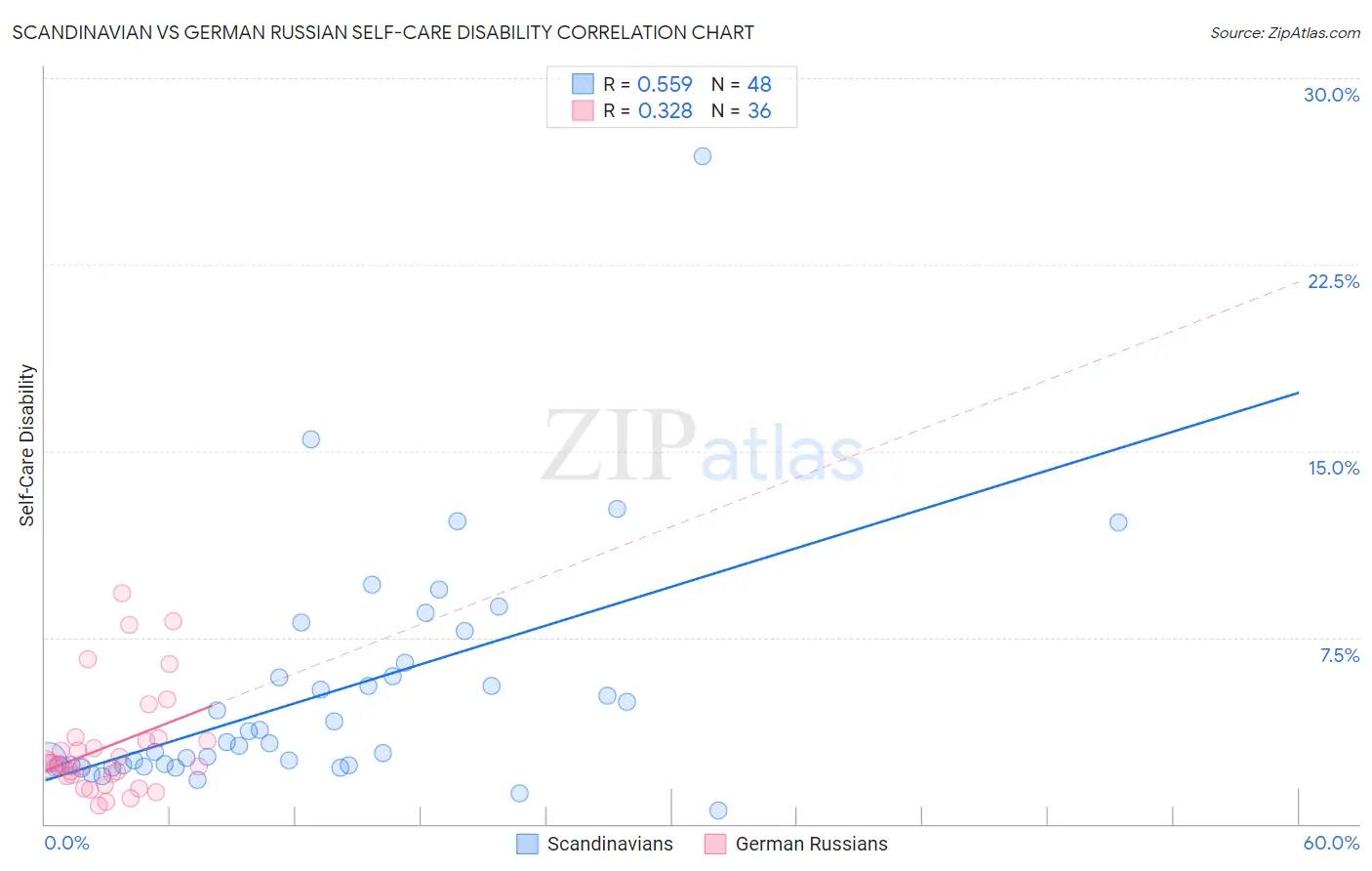Scandinavian vs German Russian Self-Care Disability Correlation Chart
