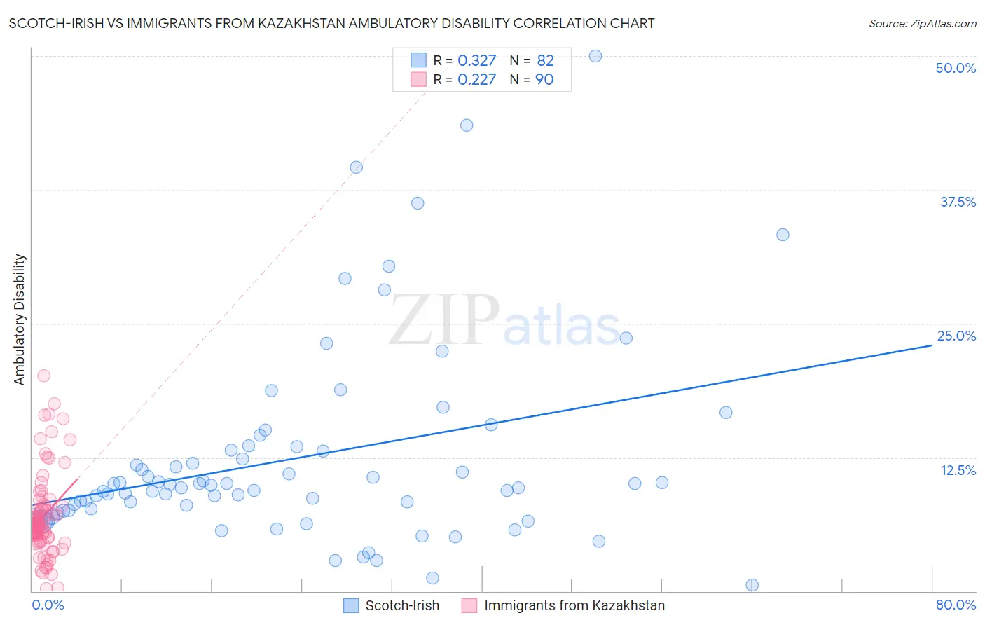 Scotch-Irish vs Immigrants from Kazakhstan Ambulatory Disability Correlation Chart