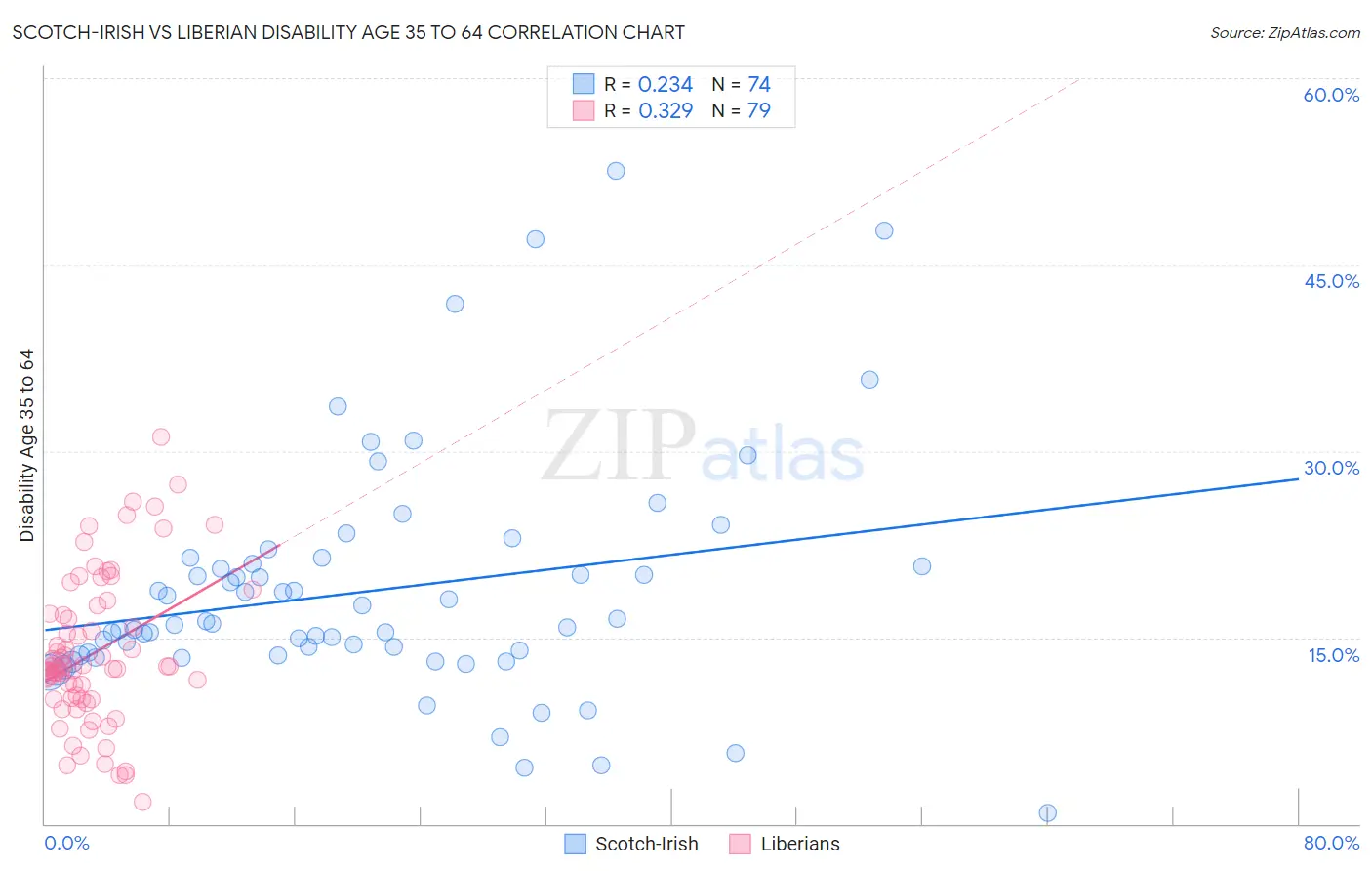 Scotch-Irish vs Liberian Disability Age 35 to 64 Correlation Chart