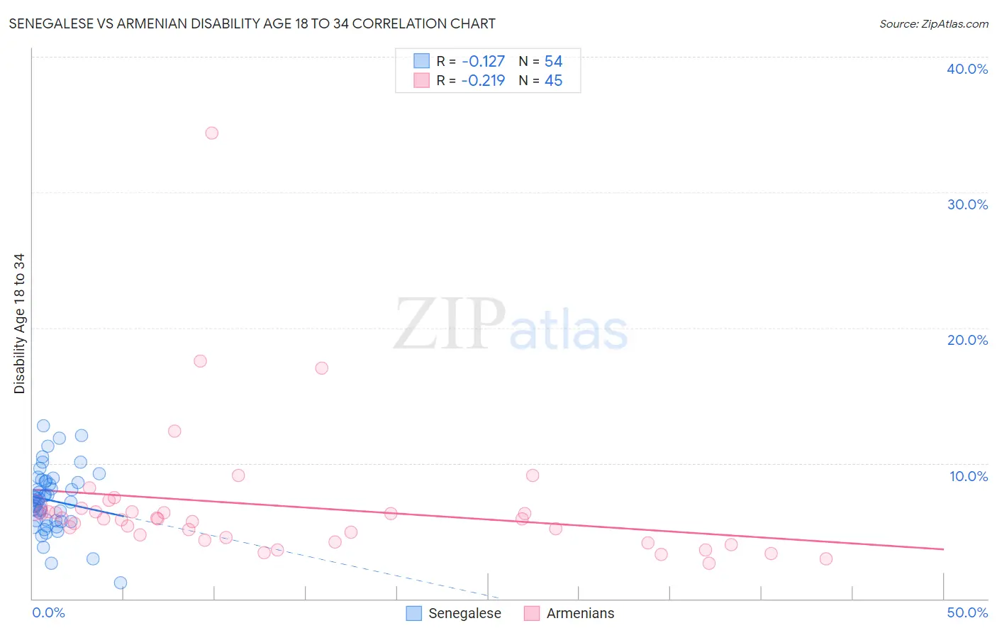 Senegalese vs Armenian Disability Age 18 to 34 Correlation Chart