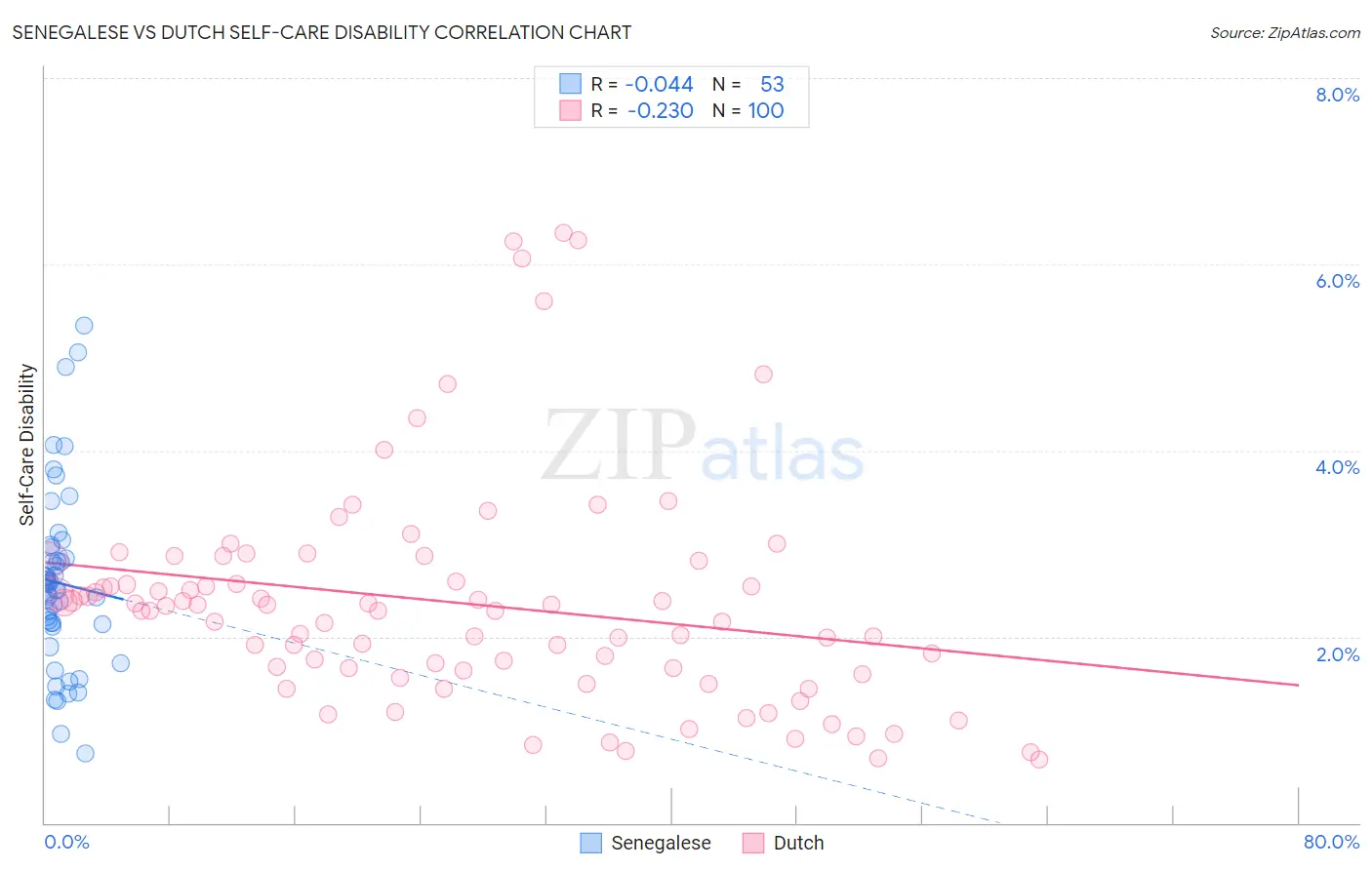 Senegalese vs Dutch Self-Care Disability Correlation Chart