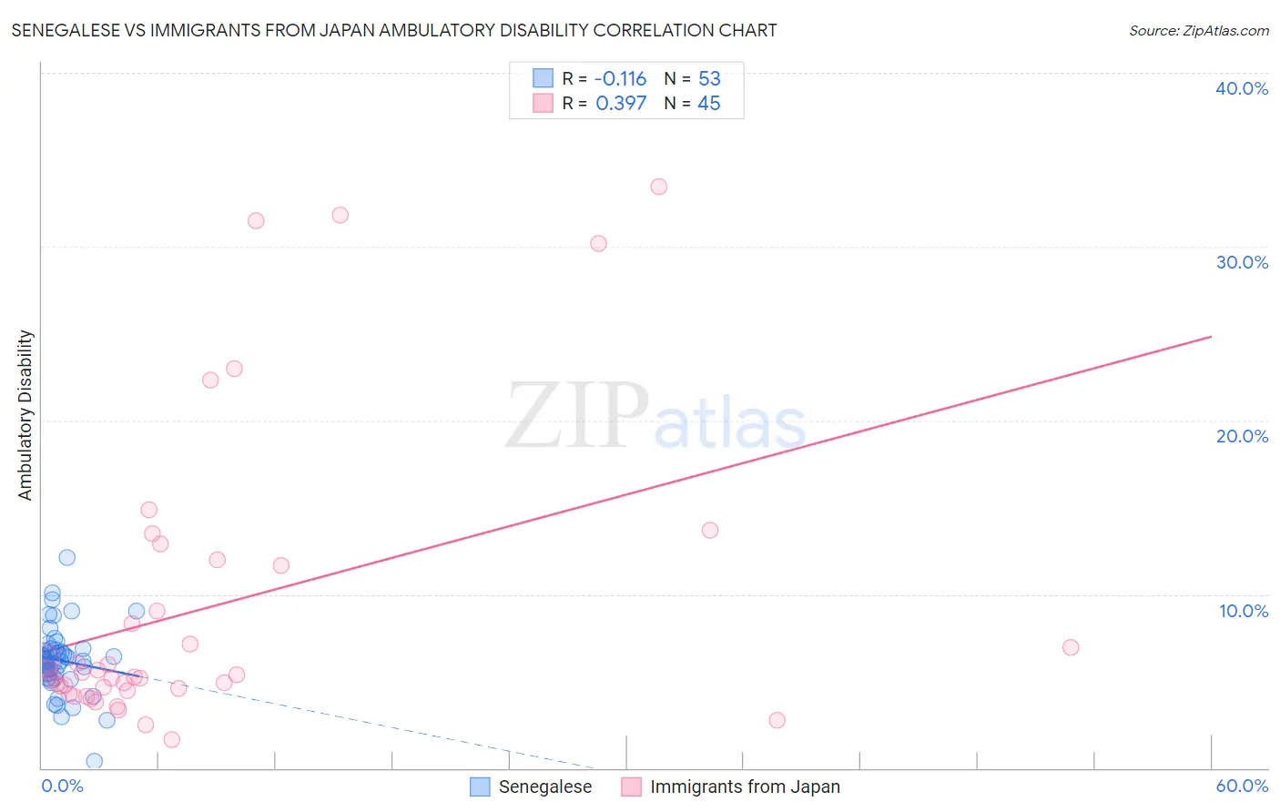 Senegalese vs Immigrants from Japan Ambulatory Disability Correlation Chart