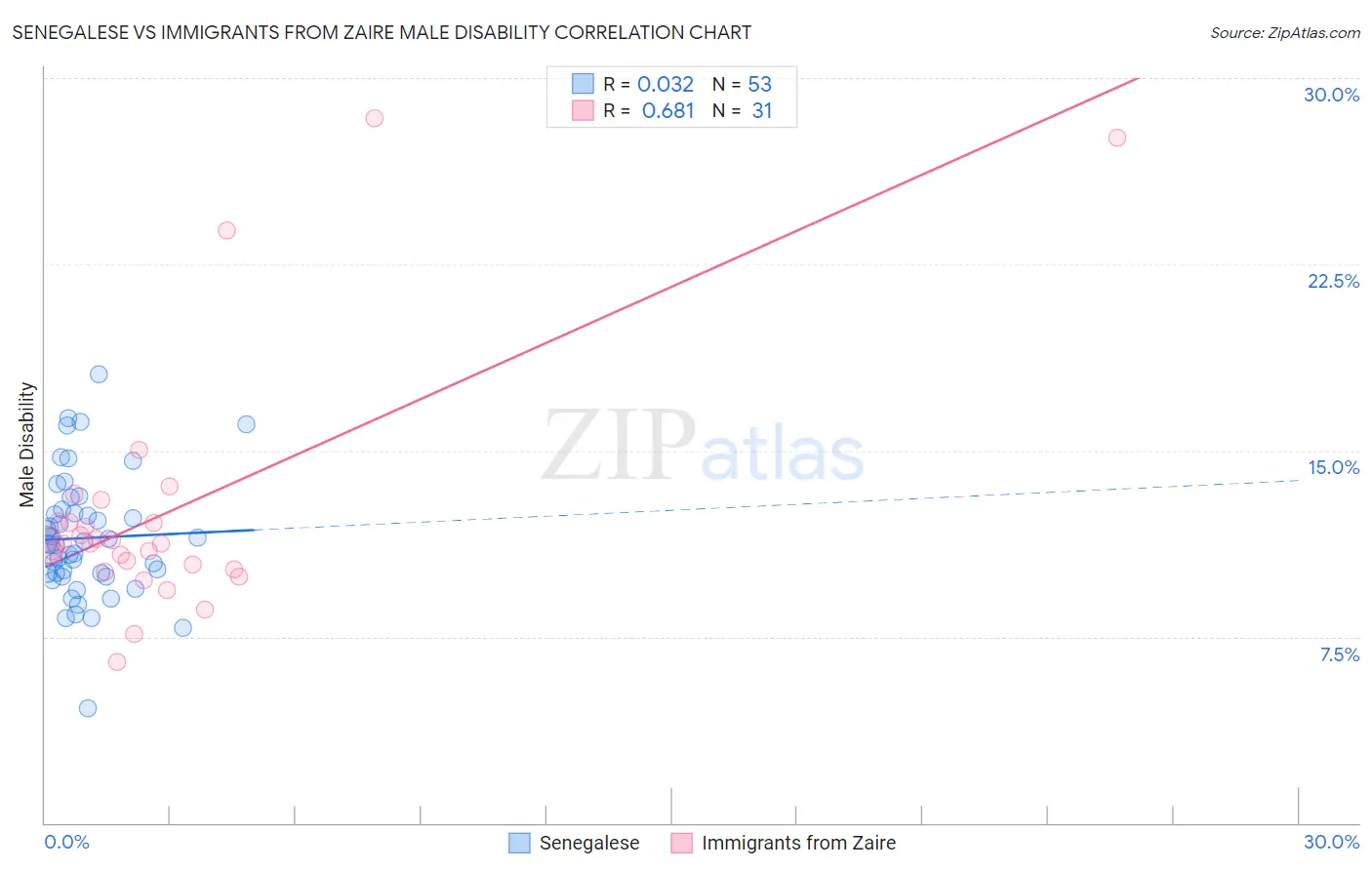 Senegalese vs Immigrants from Zaire Male Disability Correlation Chart