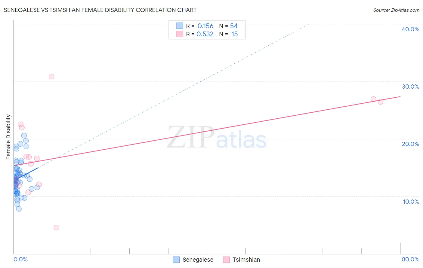 Senegalese vs Tsimshian Female Disability Correlation Chart