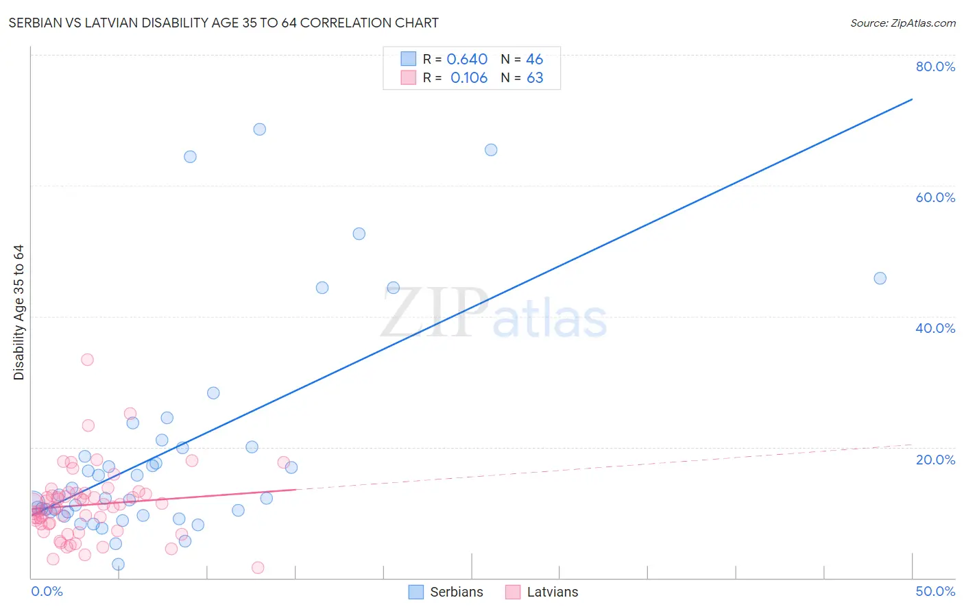 Serbian vs Latvian Disability Age 35 to 64 Correlation Chart