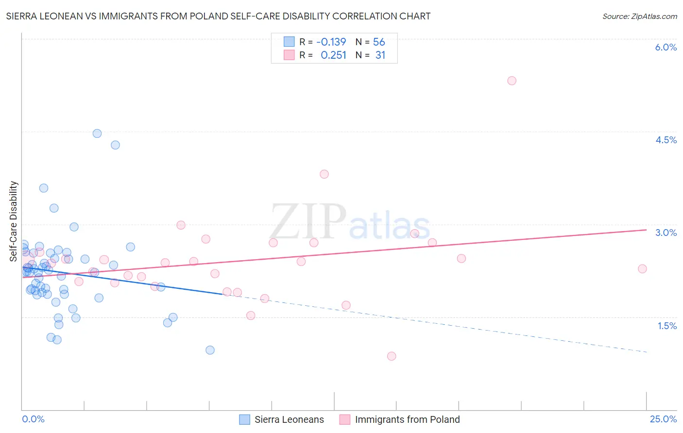 Sierra Leonean vs Immigrants from Poland Self-Care Disability Correlation Chart