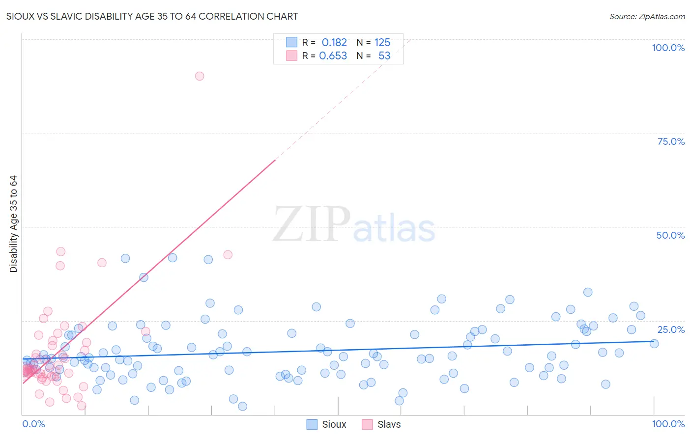 Sioux vs Slavic Disability Age 35 to 64 Correlation Chart