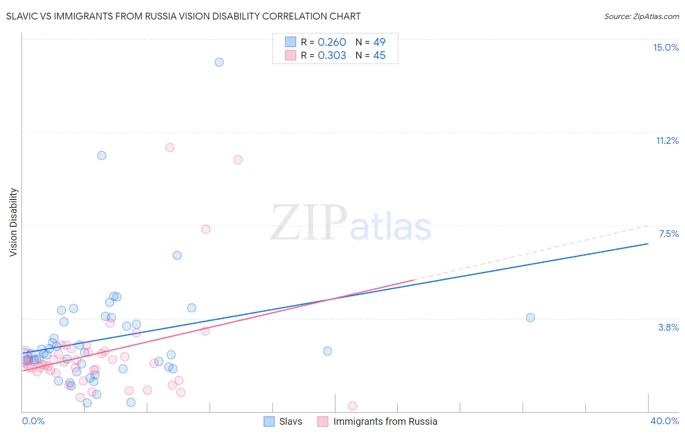 Slavic vs Immigrants from Russia Vision Disability Correlation Chart