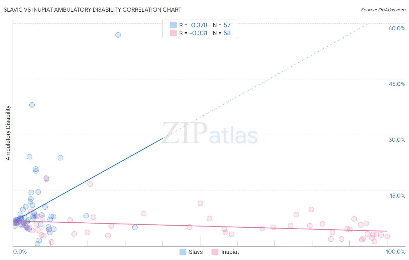 Slavic vs Inupiat Ambulatory Disability Correlation Chart