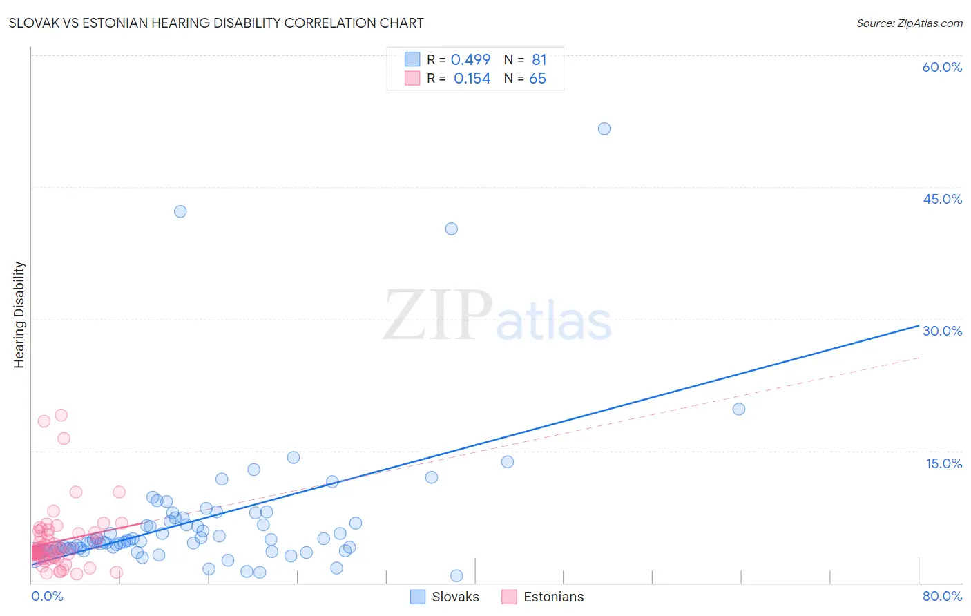 Slovak vs Estonian Hearing Disability Correlation Chart