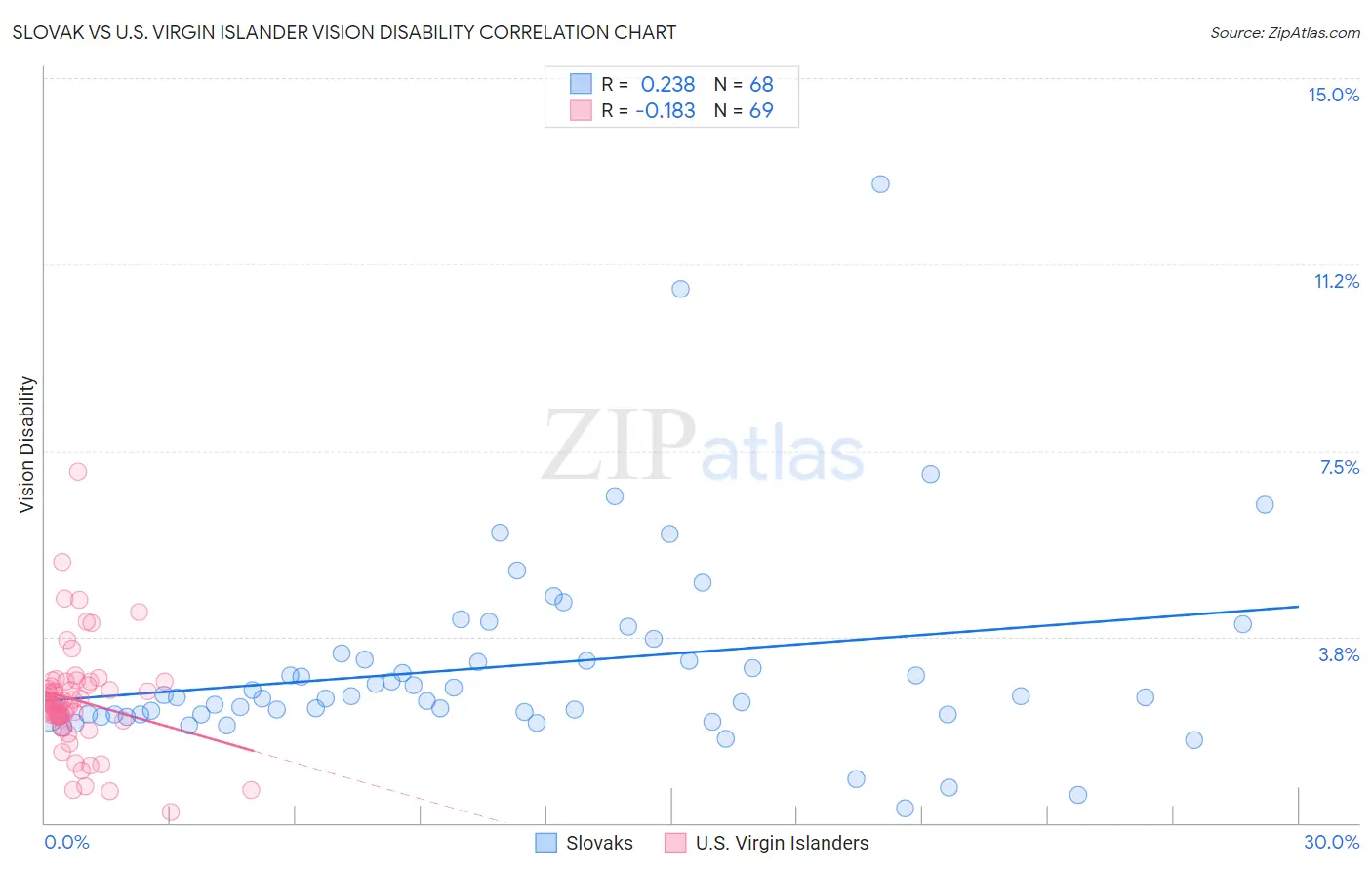 Slovak vs U.S. Virgin Islander Vision Disability Correlation Chart
