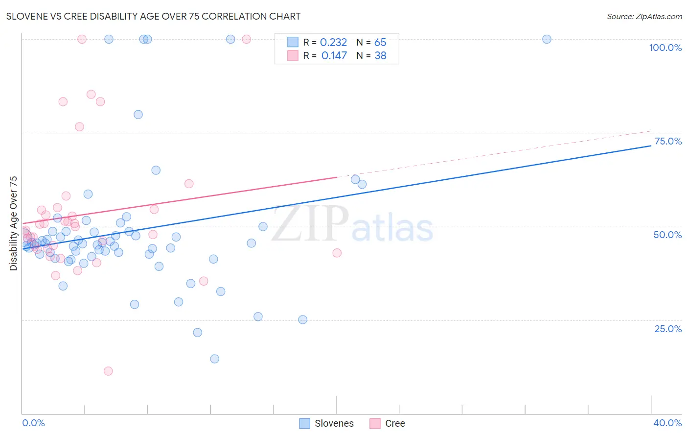 Slovene vs Cree Disability Age Over 75 Correlation Chart