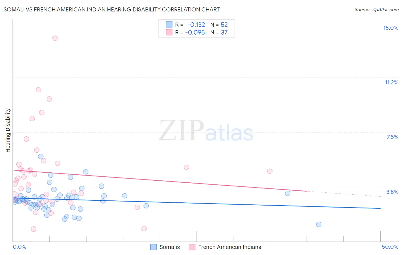 Somali vs French American Indian Hearing Disability Correlation Chart