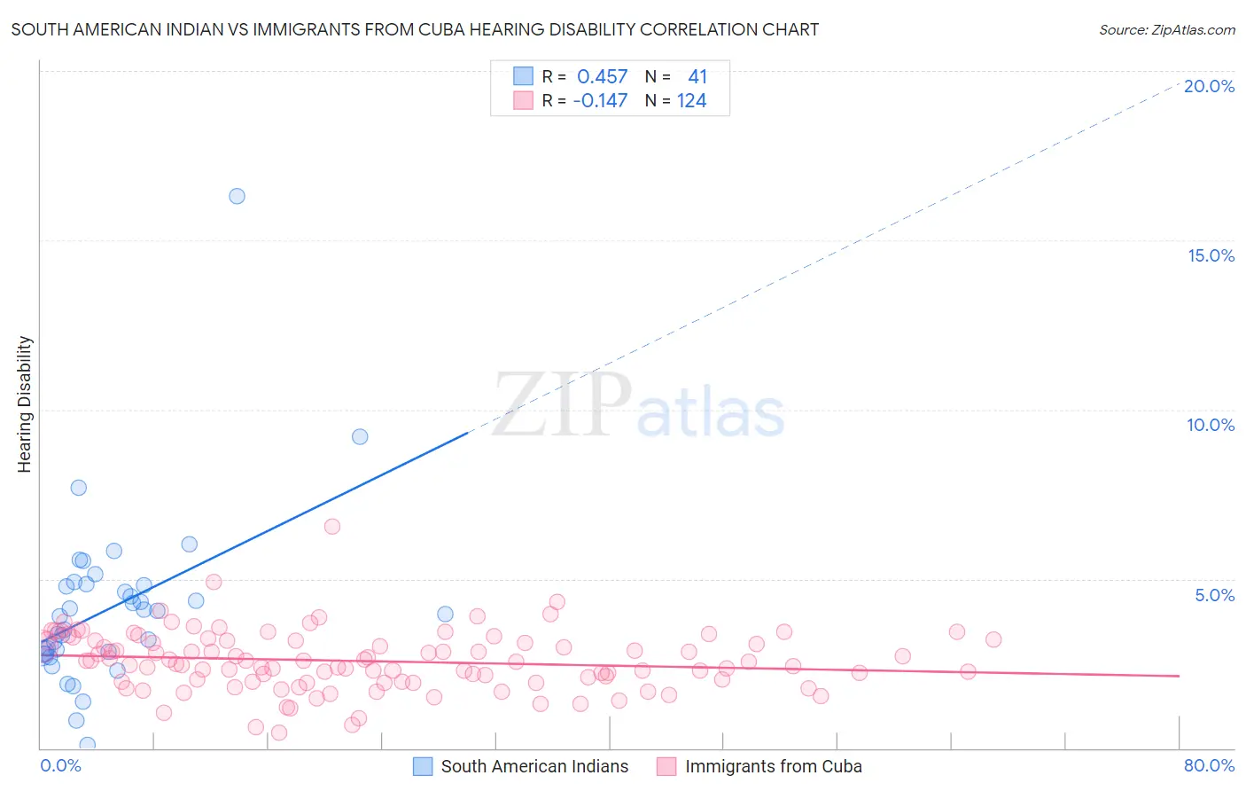 South American Indian vs Immigrants from Cuba Hearing Disability Correlation Chart