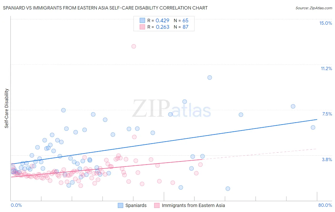 Spaniard vs Immigrants from Eastern Asia Self-Care Disability Correlation Chart