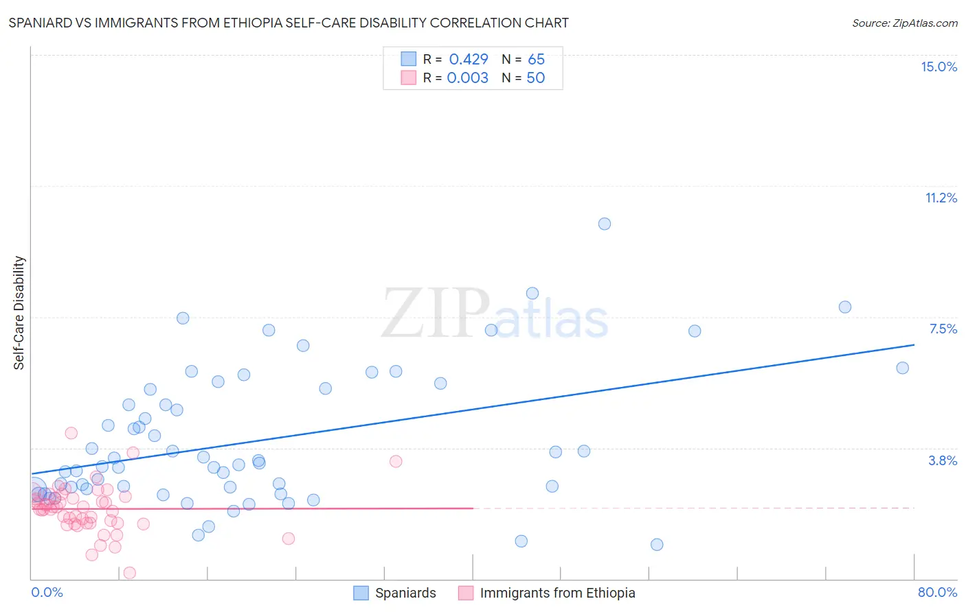Spaniard vs Immigrants from Ethiopia Self-Care Disability Correlation Chart