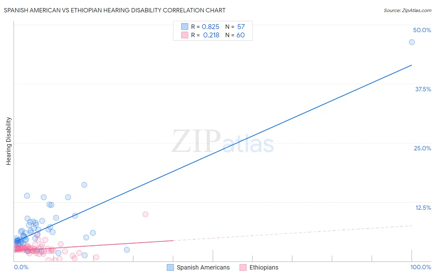 Spanish American vs Ethiopian Hearing Disability Correlation Chart