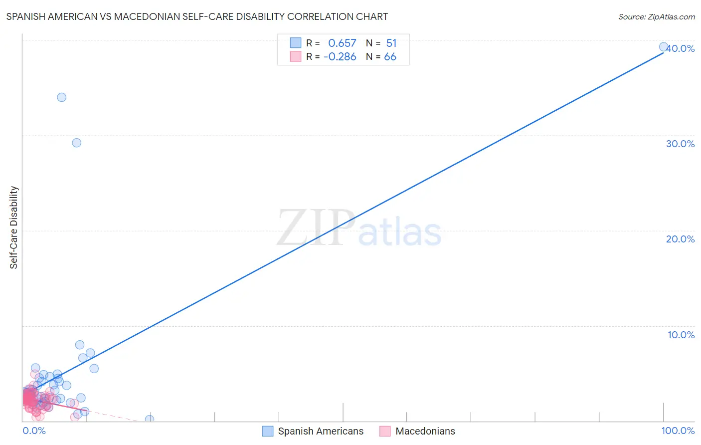Spanish American vs Macedonian Self-Care Disability Correlation Chart