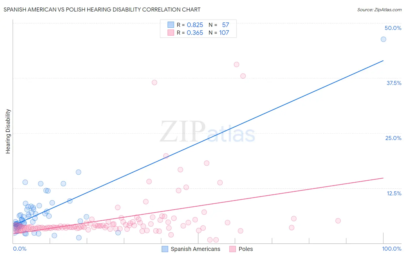 Spanish American vs Polish Hearing Disability Correlation Chart