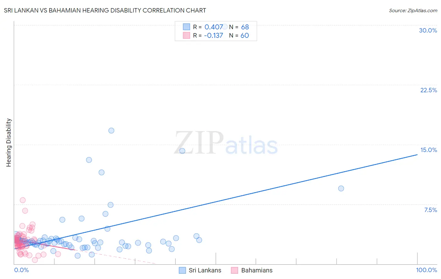 Sri Lankan vs Bahamian Hearing Disability Correlation Chart