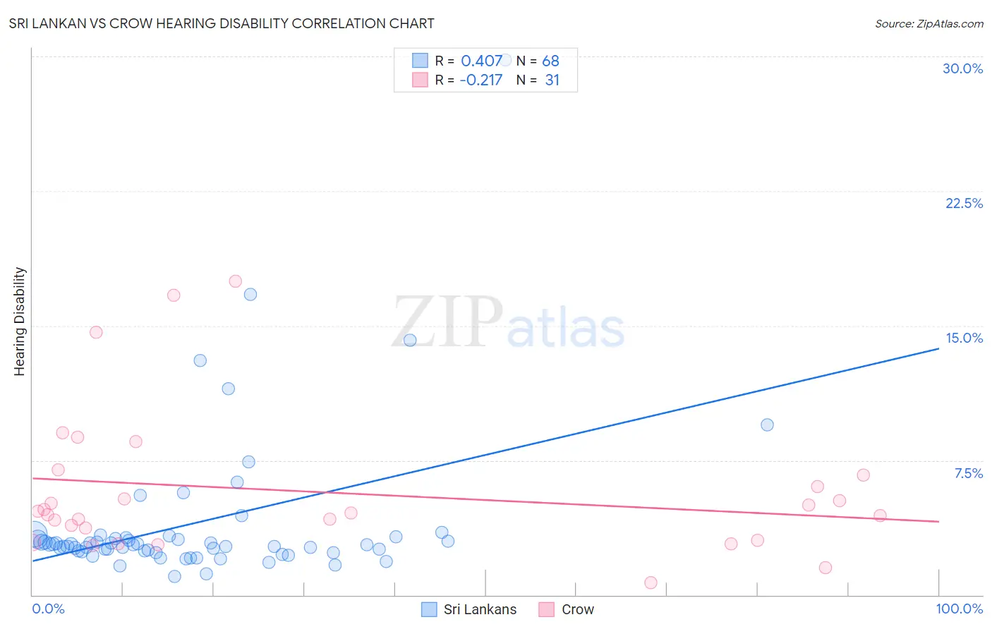 Sri Lankan vs Crow Hearing Disability Correlation Chart