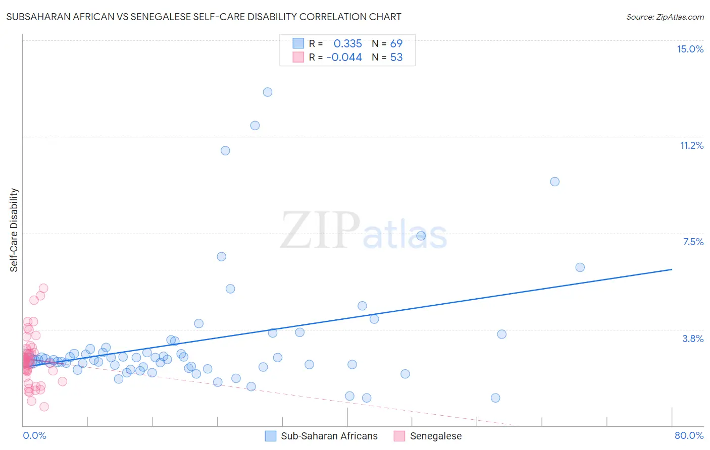 Subsaharan African vs Senegalese Self-Care Disability Correlation Chart