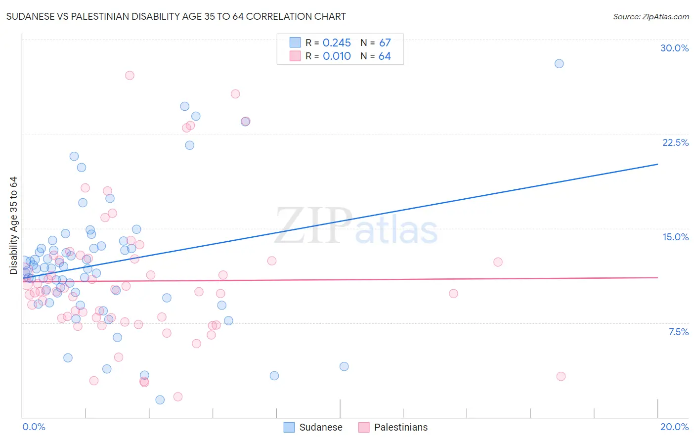 Sudanese vs Palestinian Disability Age 35 to 64 Correlation Chart