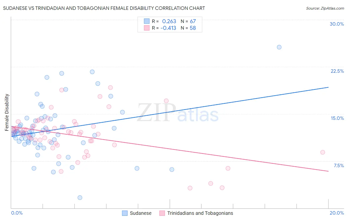 Sudanese vs Trinidadian and Tobagonian Female Disability Correlation Chart